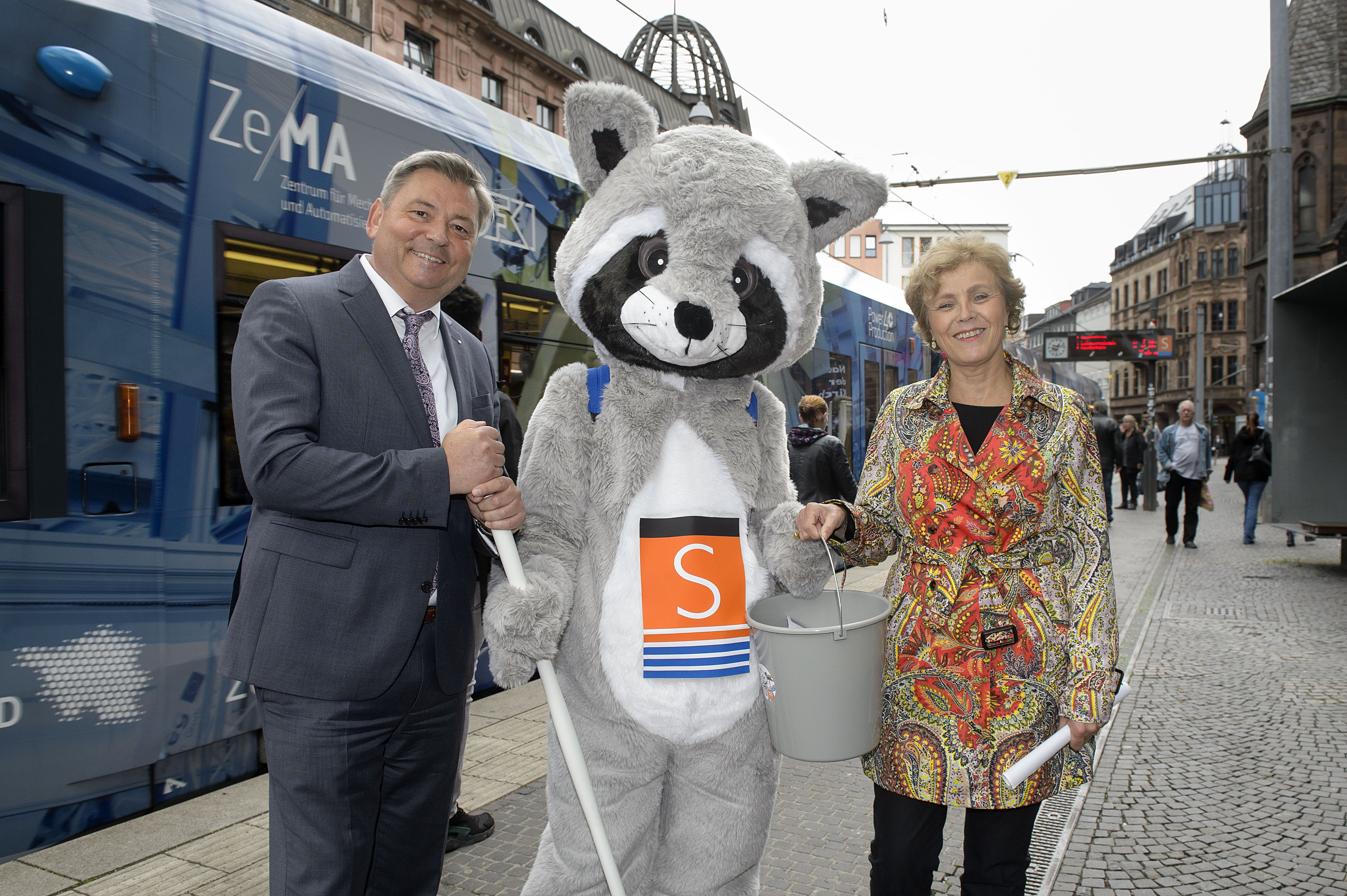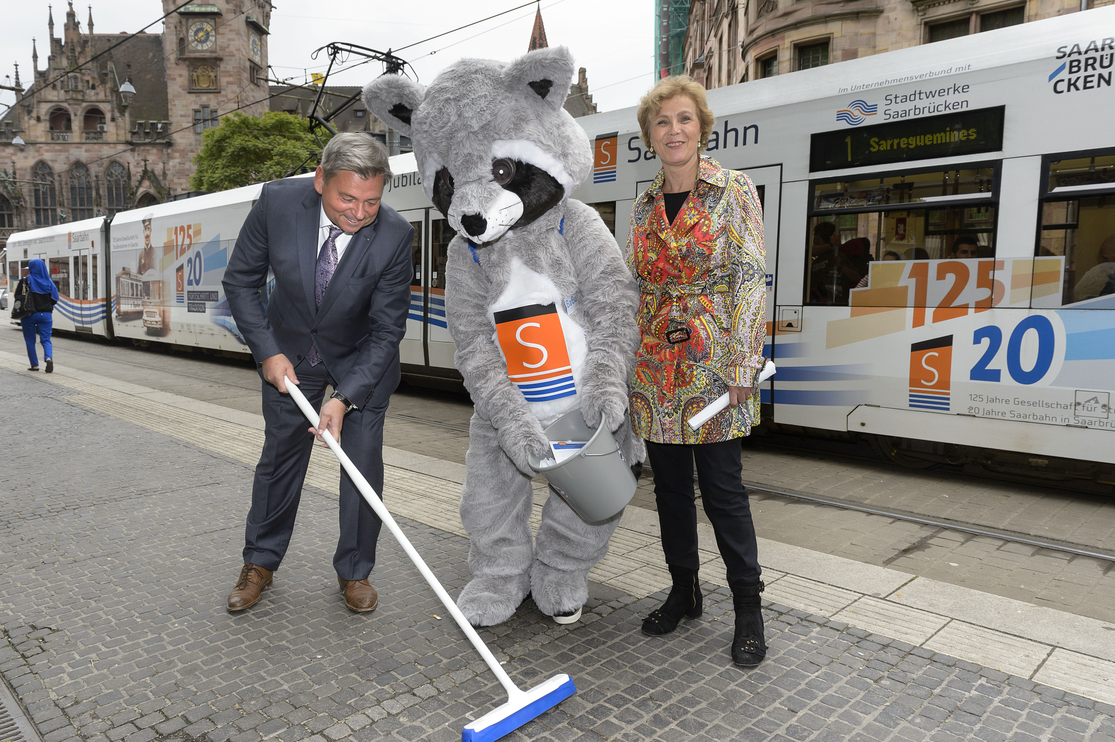 BaBu im Einsatz: Mit Oberbürgermeisterin Charlotte Britz und Saarbahn-Chef unterwegs.Download