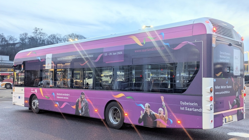 Neu ab 2026 : Werben auf 28 hochmodernen und klimaneutralen H2-Bussen“ Informationen unter werbung@sw-sb.de