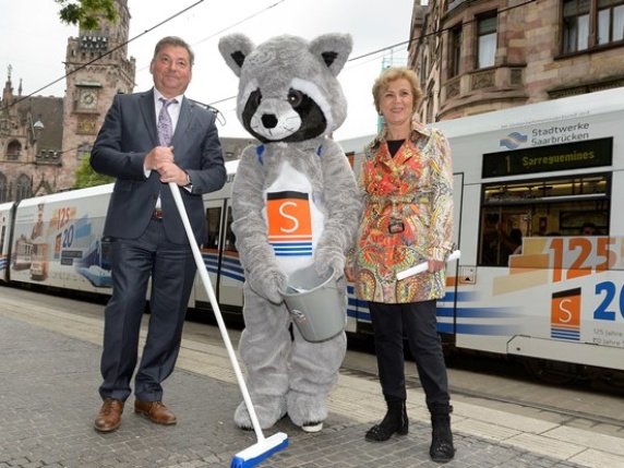 „Wir wollen alle ein sauberes Saarbrücken, dazu gehören auch die öffentlichen Verkehrsmittel mit ihren Haltestellen“, ist sich Oberbürgermeisterin Charlotte Britz sicher. Das Waschbär-Maskottchen BaBu bittet die Fahrgäste auf Plakaten und Handzetteln: „Obwohl ich täglich reinige, kommt immer wieder neuer Müll dazu. Helft mit beim Sauberhalten“.