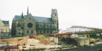 Parallel hierzu lief der Bau des Anschlussgleises Richtung Messegelände. Der Anschluss an den „Saardamm" im Bereich der Josefsbrücke eröffnet der Saarbahn weitere Perspektiven wie beispielsweise die Nutzung der DB-Strecke links der Saar.